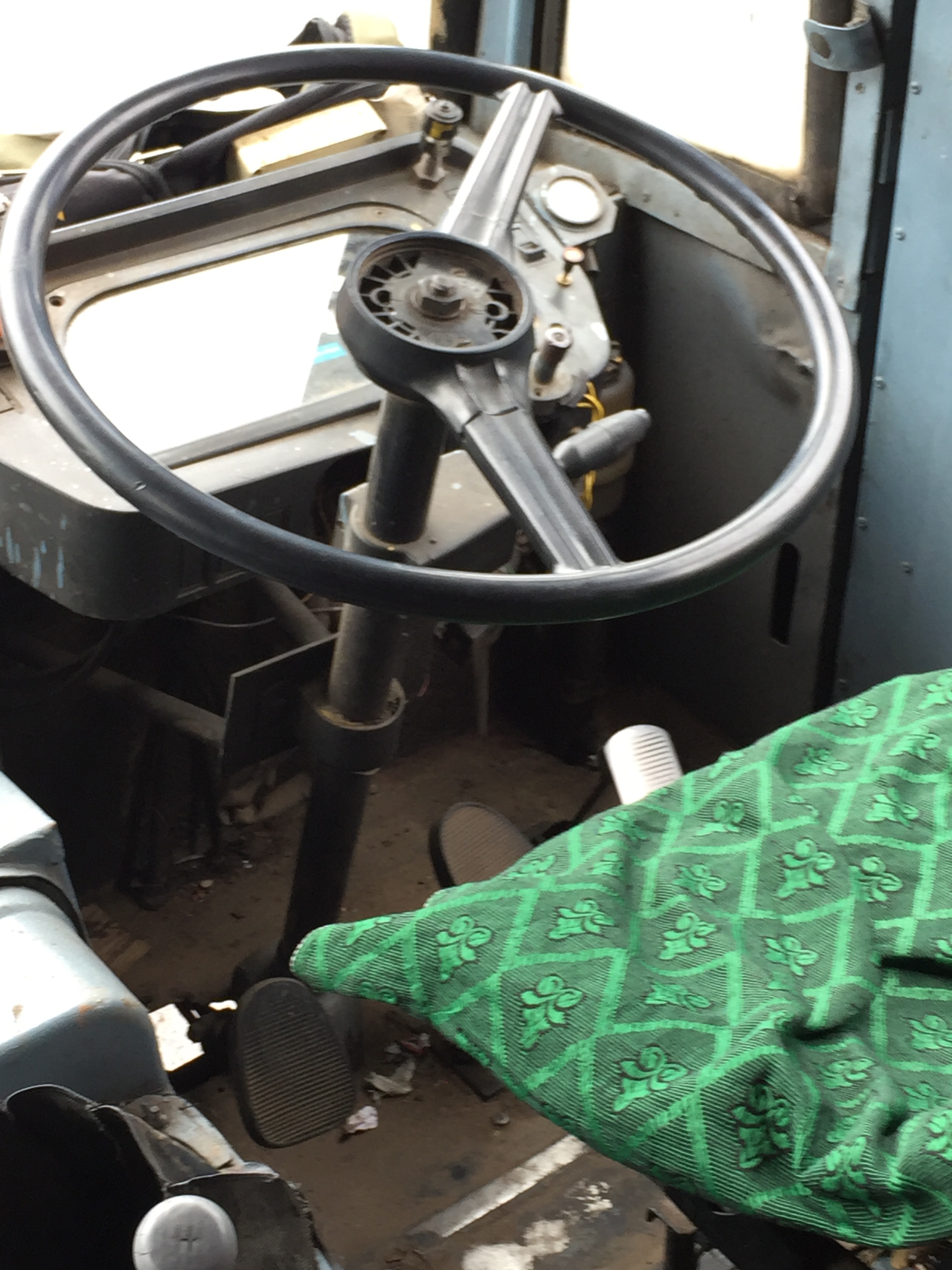 Voici le fameux. The famous.Avec le comodo à l’air !Pour l’instant il n’y a personne, mais une demi heure plus tard nous n’aurons plus un seul centimètre pour s’asseoir. Half an hour later the bus is completely full and we can’t even move.